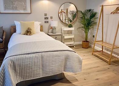 Bedroom 2 (adjacent to the accessible bedroom provides either two singles or a King double.