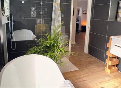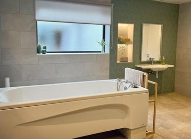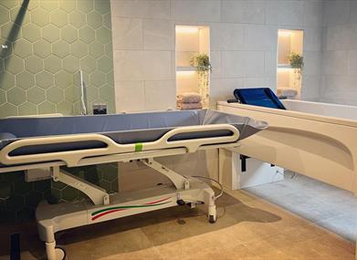 The Accessible bedroom and ensuite wetroom provides two fully profiling beds with ceiling hoist to access the bathroom. The 18sqm wet room provides a peninsula height adjustable bath, Changing / Shower trolley, Shower area with support rails and seating, a peninsula wash / dry loo and two sizes of Rifton HTS toileting chairs.