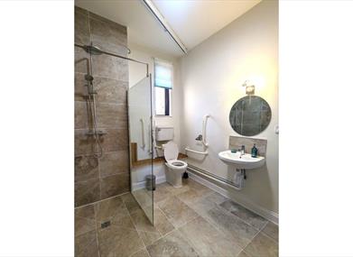 One B&B room includes a fully equipped wet room with a lowered sink, handrails, and optional shower chair.