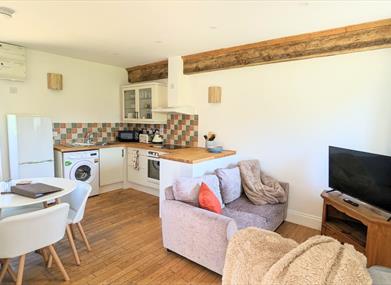 Hazel Cottage is fully level with an open-plan kitchen, a spacious bedroom, and a wet room.