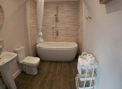 There is a large open plan kitchen with dual height hob and sink allowing everyone to take part in rustling up a feast. The kitchen has a full range of appropriate utensils including light-weight pans, a talking microwave, dishwasher and washing machine. We have a no pour kettle under-counter fridge and freezer that all important Nespresso machine.