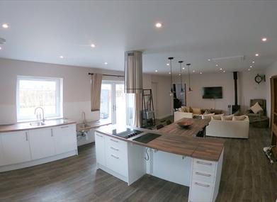 The fabulous open plan living, and kitchen areas allow all guests to be sociable and come together in one space. At the heart of the living area there is a wood burning stove which makes the property not just functional but warm and inviting; it’s a lovely place to play games, read, watch a movie or chat.