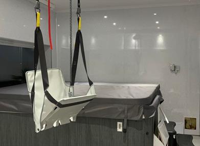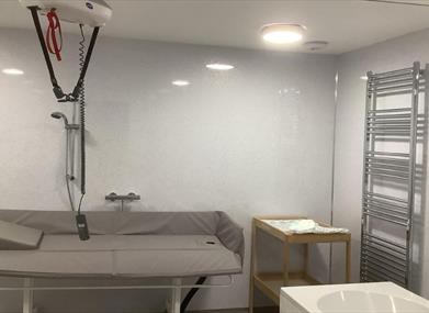 Within Bissit's Barn there is a hot tub room which can be booked independently of staying with us. This is currently being fitted with a ceiling track hoist.