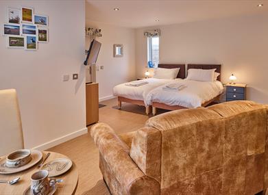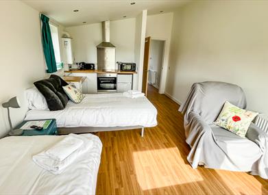 The kitchens have modern appliances, including induction hob, oven, microwave, fridge/freezer and ample storage for your stay. The Ruby studio is the smallest of our kitchens and does not include freezer, however there is one available for use in the Laundry room which sits adjacent to the property.