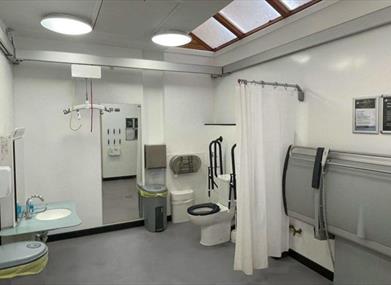 Our Changing Places facilities allow you to enjoy our woodland without worry. The large, clean, and safe facilities are suitable for children and adults, designed with users dependent on carers in mind. They are complete with a wall mounted and height adjustable bench, ceiling and hoop hoist, peninsular toilet, adjustable height washbasin, and privacy screen.