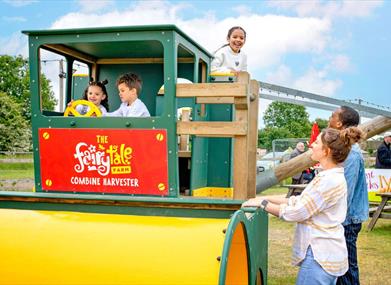 Visit the Combine Harvester, with two levels, multiplay activities and a slide, it is perfect for imaginary farm play! Step inside our new Musical House. Operate the fairground organ or the brass band – everything is people-powered! And not forgetting our dinosaur-themed area, Dino Valley, with a collection of life-sized (but very friendly) dinosaurs.