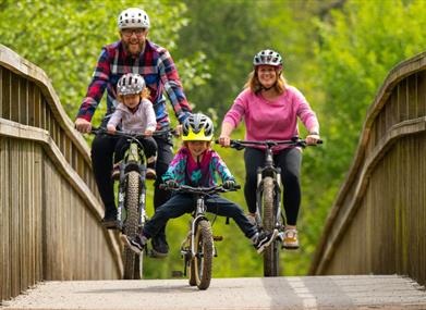 No bike? No problem. We have on-site bike hire available if you need to rent one. There are various options available including e-bikes, children’s bikes and trailers. Gloucestershire-based charity “Goals Beyond Grass” offer accessible bike hire from the centre, with adapted bikes available suitable for a range of disabilities. No prior experience is needed.