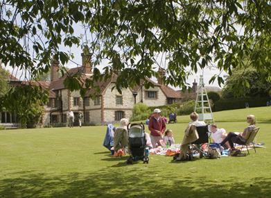 Located in the South Downs National Park, the site hosts beautiful 18th century gardens. With sweeping lawns and blooming cottage gardens there is lots to explore. There are no more than three steps outside. There is also a gently sloping meadow, where wildflowers grow, attracting lots of insects and small mammals, and consequently bats and lots of birds, from kestrels to swallows.