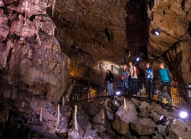 From the cavern tour to the visitor centre and café, we’ve designed our facilities and tours to be inclusive and accommodating. Wheelchair users can explore the main cavern chamber, which is 100 metres/300ft long, with no steps. The remaining path includes 28 steps (14 up, 14 down) leading to the final chamber, which is 300 metres/1000ft from the entrance. Staff are trained to provide assistance – please notify us in advance if you have any additional requirements.
