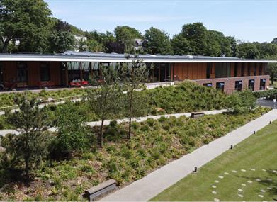 We are fully wheelchair accessible, with a clear pathway and exhibits at comfort level, sweeping ramps throughout the garden to allow easy access. The exhibition, Imagine More Cafe, shop and facilities are all on ground level. The building has level flooring throughout (no steps).